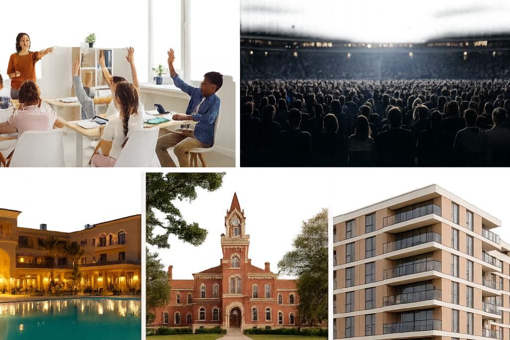 Large Venues — Stadiums, arenas, and event centers optimized for high-user density.